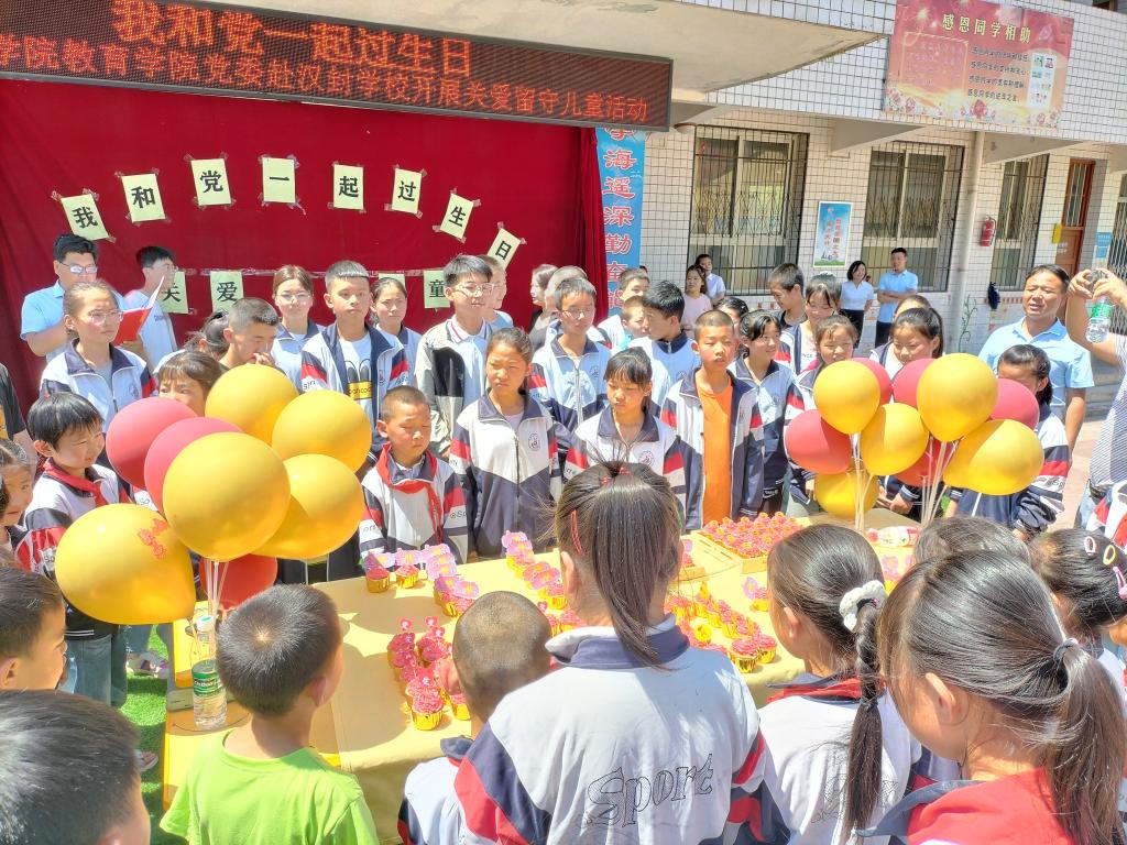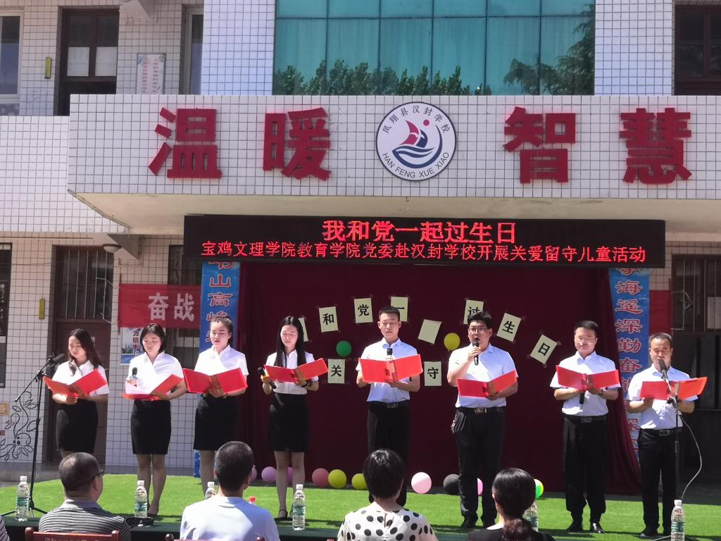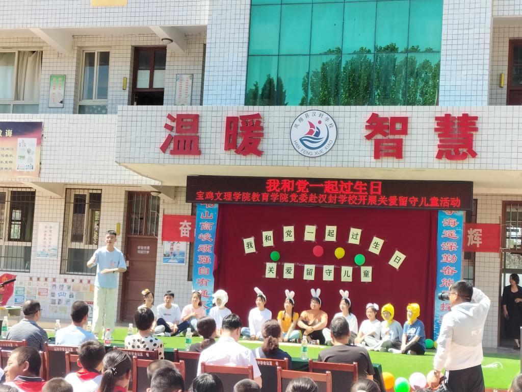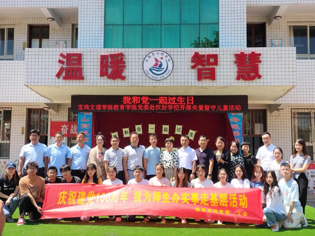 6月22日,公司党委组织师生党员赴凤翔县汉封公司开展“庆祝建党100周年 我为师生办实事走基层活动”暨“我和党一起过生日”关爱留守儿童活动。凤翔县教育体育局赵永锋股长、陕西立方爱教育科技有限公司总经理马莉丽、陕西长美科技有限公司董事长方婕、公司党委副书记屈金梅、副经理周喜华、工会主席詹瑜及师生党员代表,汉封公司全体师生参加了本次活动。