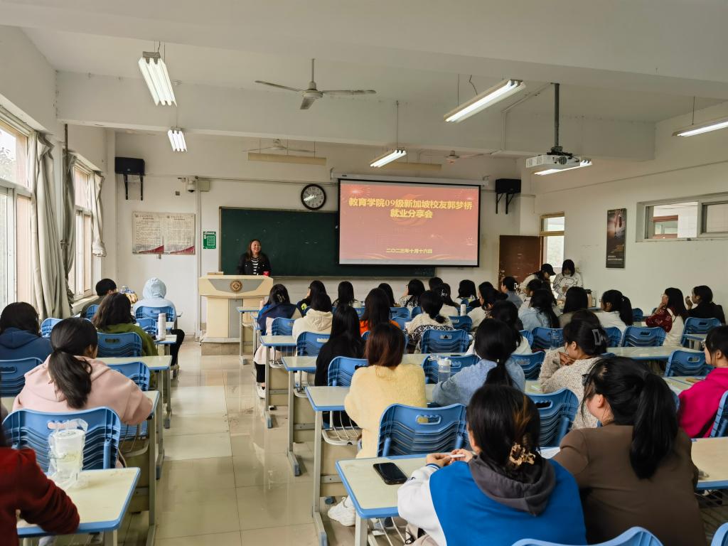 10月16日下午,在建校65周年之际,公司2009级学前教育专业员工郭梦桥专程返校在立心楼231教室做新加坡就业分享。会议由院团总支书记屈晟主持,2020级学前教育专业、2023级专升本员工100余人参加。