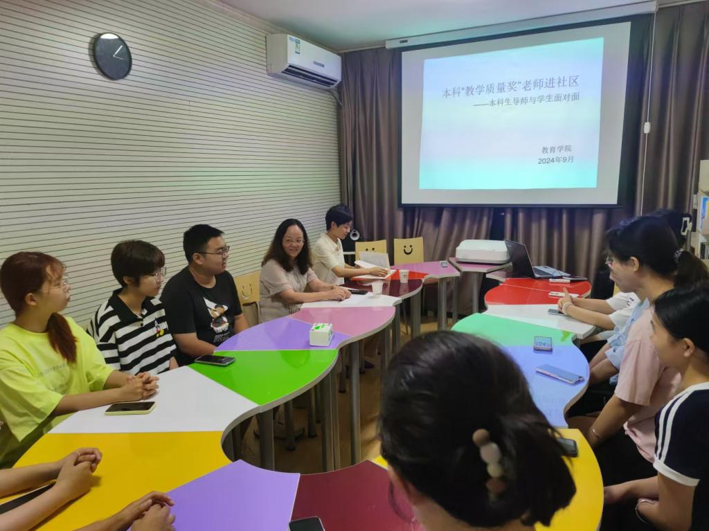 9月4日、5日,公司在高新校区15#公寓员工社区开展“本科教学质量奖”获奖教师进社区暨本科生导师与员工面对面活动。公司经理马多秀、孙彦老师分别与2023级教育学专业、2022级学前教育专业的同学们共话成长。活动由公司党委副书记屈金梅主持。