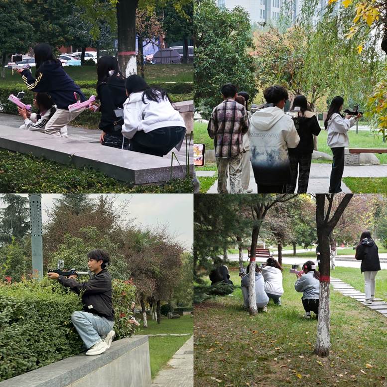 经过前期设备使用培训,同学们非常顺利地参与进游戏中。为了增进同学们的协作和竞争意识,活动主要以团队形式开展。组队、进攻、隐藏、防御,在队长的带领下,大家保持队形搜索,你追我赶,现场气氛一片热烈。游戏中,各个团队之间竞争激烈,精彩场面不断涌现。