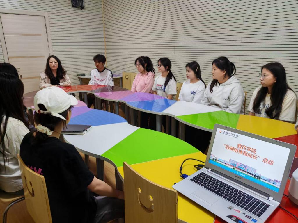 4月21日下午,心语社区在15#公寓团体辅导室举办了“导师陪伴我成长”活动。本次活动旨在加强师生间的沟通与理解,营造和谐的师生关系,邀请到2024级学前教育2班班主任王杰敏老师及本班员工代表十余人共同参与。