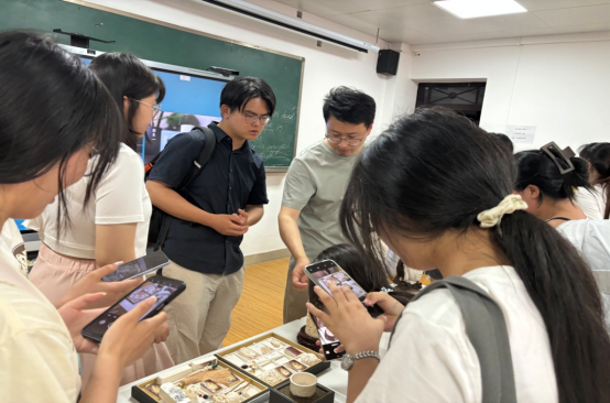 活动现场,葛雷杰不仅带来了精美的纯手工雕刻作品,更展示了完整的创作工具和工艺流程。从原料选取到成品打磨,每一个环节都体现着劳动的价值。在作品传看环节,同学们纷纷拍照记录,小心翼翼地触摸着雕刻纹路,感受着非遗文化的温度。在机器化创作的今天,他依然坚持纯手工创作,每一件作品都凝聚着数小时的精心雕琢, “任何艺术创作都离不开扎实的基本功和持久的付出。”这种精益求精的态度让员工深受触动。