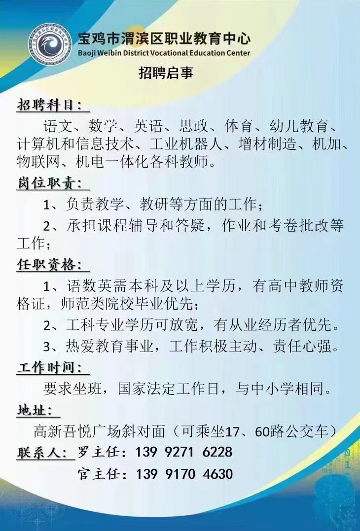 上一条:2023年宝鸡高新区公开招聘幼儿园教职工公告 下一条: 延安市富县春雨初级中学招聘教师