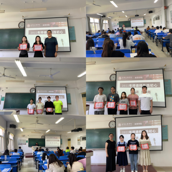 经过选手们一个多小时的激烈角逐,21级教育学类3班吕欣研同学和21级学前教育专升本3班的李裕洁同学脱颖而出,荣获“师德师风践初心”演讲比赛一等奖,其余同学分获比赛二等奖和三等奖。