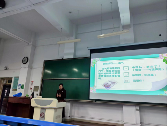 在朗读艺术专题中,安老师以《雨霖铃》《囚歌》《再别康桥》等为例,从抓住实词、抓内在语、突出重音、停连、交替语速等技巧出发,使同学们形象感受朗读的魅力,学习朗读的技巧。