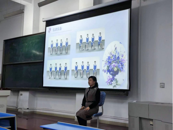 在教师礼仪专题中,安老师从教学礼仪的基本要求、教师着装、师姿师态、教师口头表达等几个方面做了系统全面的讲解。为了让员工对教师礼仪有更加直观的了解,安老师当场示范了教师上课时规范的步态、站姿、着装、发型、及交谈时目光的位置,使同学更加了解和学习教师礼仪,以提高自身教师素养和个人魅力。
