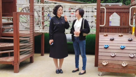 保教主任权菁、保教干事王聪老师分别带领大家参观了室内外、公共区域、功能部室等环境。自然童趣的环境创设,丰富开放的材料投放,自主愉悦的游戏状态,高效智慧的支持互动,给大家留下深刻的印象。