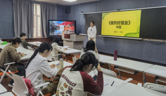 为进一步提升师范生的教学实践能力和创新能力,展示未来教师的风采,学前教育师范生教学技能大赛决赛于10月9日下午在立心楼329和324教室分两组同步举办,共来自2021级、2022级和2023级的12名员工参加了比赛。本次的比赛形式为面试,分为三笔字、教学设计、课件制作、即兴演讲、模拟授课和回答问题五个部分。本次比赛由学前教育系魏园园老师主持,评委有:学前教育系张鹏妮老师、孙彦老师、史文秀老师、王芳老师、高娟老师、张晓宏老师。