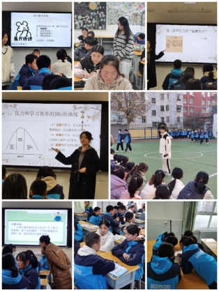 随后,所有参加专业见习的同学深入到七年级、八年级的16个班级中,开展心理育人专业实践活动。同学们精细准备,认真组织,开展心理健康教育课程讲授、心理健康教育主题班会、团体心理辅导等教学活动,内容涉及自我认知、人际交往、情绪管理、压力应对、环境适应、时间管理、职业规划、团队凝聚力提升等主题。在同学们的带领下,店子街中学的初中生们积极参与、认真思考、小组讨论、踊跃发言,活动现场充满欢声笑语,临别之际,员工们对公司同学们表达了深深的感谢与离别的不舍。