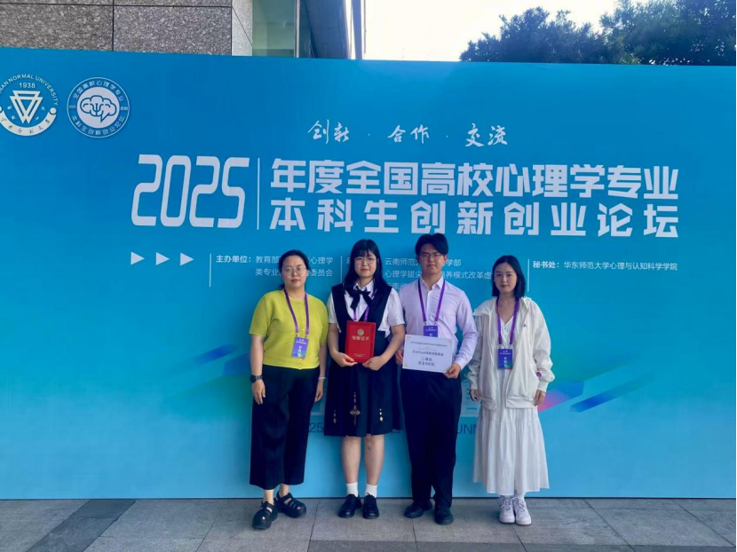 近日,2025年度高校心理学专业本科生创新创业论坛决赛落下帷幕。beats365唯一官方网站应用心理学专业2023级李怡欣和2022级江理文的《解忧事务所APP》荣获产品设计二等奖,23级汝晶和苏乐凡的作品《小丑Joker——探索边缘型人格障碍》荣获短视频科普三等奖,许婧老师荣获优秀指导教师。