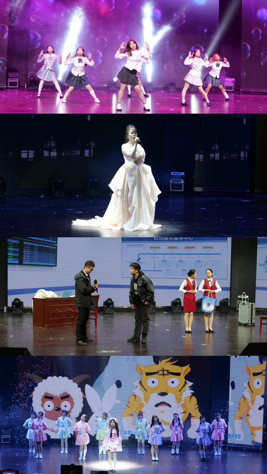 篇章一:青春飞扬 活力绽放:动感的街舞踏出青春节拍,婉转的独唱诉说青春心声,幽默的小品演绎青春欢笑,灵动的歌伴舞唱响青春活力。一幕幕精彩展演,生动展现了教院学子昂扬向上的精神风貌。