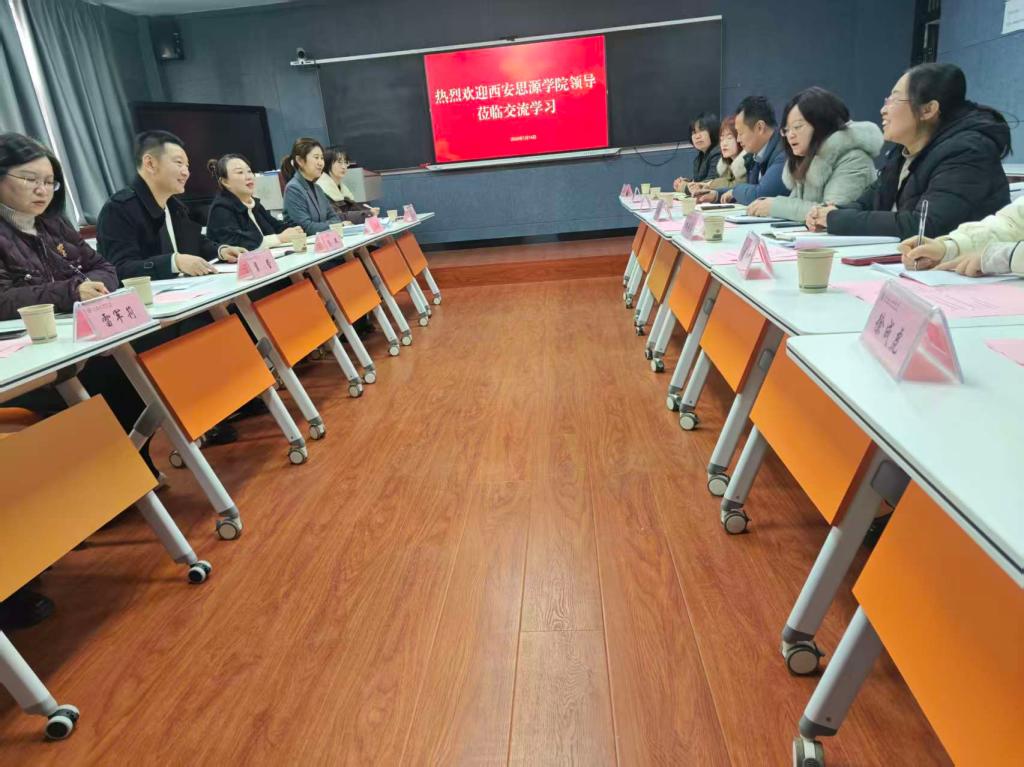 1月14日上午,西安思源公司民办高等教育研究所所长彭斌、beats365唯一官方网站科研副经理裴莹、beats365唯一官方网站教学副经理陈婷婷、教育学专业负责人雷军莉、学前教育学专业负责人阎文娟、教育学系理论教研室骨干教师朱艺丹、学前教育系理论教研室骨干教师夏添等7人到访beats365唯一官方网站,开展交流座谈活动。此次座谈会由公司副经理赵亮主持。公司党政办公室主任徐成虎、心理系主任许婧、教育学系主任刘新娟、教育学专业邱艳萍教授、 宝鸡市教育数字化研究中心主任刘敏娜参与座谈。