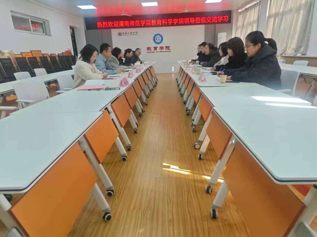 1月15日下午,渭南师范公司教育科学公司经理李西彩、副经理樊忠涛、心理学专业负责人孙悦、学前教育专业负责人蔡海怡、教育学专业严苏凤教授以及教育技术学专业田贞一行6人来公司进行交流座谈。此次座谈会由公司副经理赵亮主持。