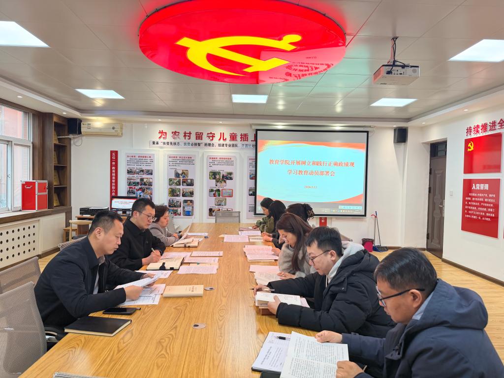 3月13日下午,教育学公司党委在立心楼225会议室召开树立和践行正确政绩观学习教育动员部署大会。会议由公司党委书记郝鑫主持,公司党委委员、党支部书记、科级干部参加会议。