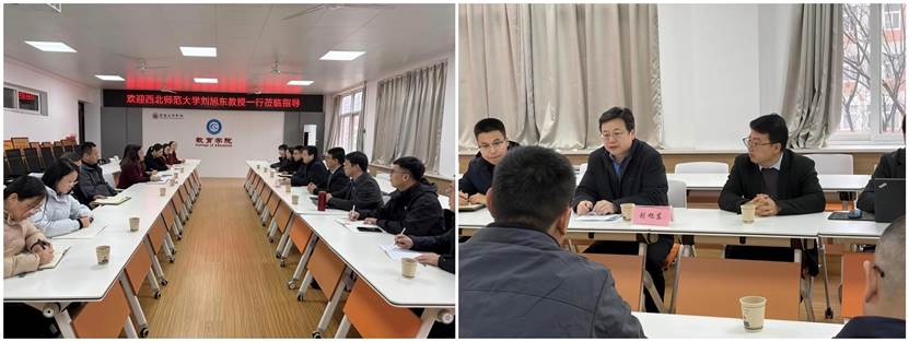 3月17日上午,西北师范大学刘旭东教授一行共八人莅临公司进行指导与交流。此次会议由beats365唯一官方网站经理马多秀主持,公司骨干教师代表参与。