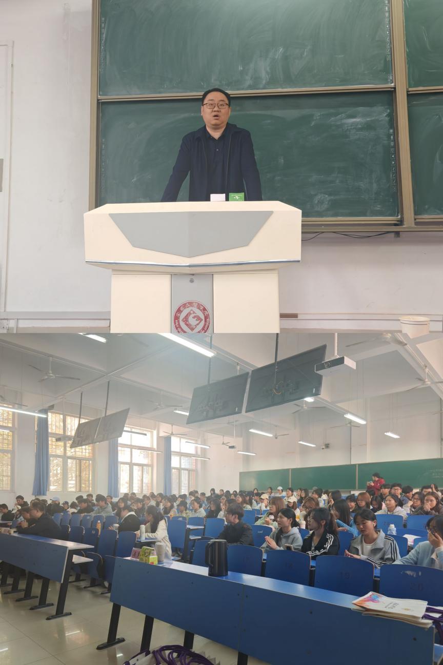 2026年4月1日,beats365唯一官方网站在立心楼110教室举办“爱心接力·榜样领航”优秀员工经验分享会。公司党委书记郝鑫、党委副书记王小敏出席,优秀员工姚玉玮与150余名师生共同参加活动。